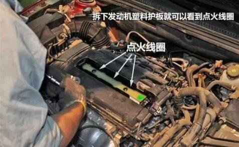 揭開塑料保護(hù)罩,我們就可以看到發(fā)動(dòng)機(jī)的點(diǎn)火線圈(點(diǎn)擊即可了解)。點(diǎn)火線圈是產(chǎn)生點(diǎn)火能量的裝置,它將電能傳遞給火花塞,火花塞會(huì)在缸內(nèi)產(chǎn)生高壓的電火花,從而點(diǎn)燃壓縮的油氣混合氣。技術(shù)較老的發(fā)動(dòng)機(jī)多采用一個(gè)單獨(dú)的點(diǎn)火線圈,然后由分電器向不同的汽缸分配電力,電能通過高壓線從分電器傳輸?shù)交鸹ㄈ?,在這個(gè)過程中電能會(huì)有所損失,導(dǎo)致發(fā)動(dòng)機(jī)效能有所下降。因此現(xiàn)在主流發(fā)動(dòng)機(jī)都采用每缸獨(dú)立的點(diǎn)火線圈,也就是說一臺四缸發(fā)動(dòng)機(jī)就有四個(gè)點(diǎn)火線圈,保證了控制更精確,能量損失更小。