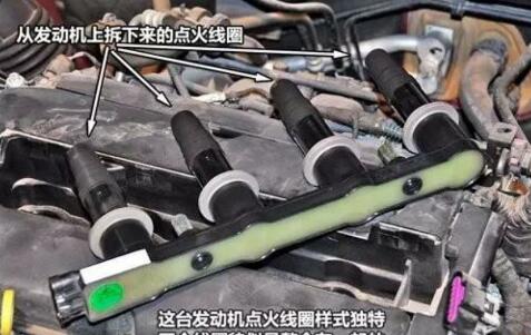 從圖中我們可以看到科魯茲發(fā)動(dòng)機(jī)的點(diǎn)火線圈。不過有一點(diǎn)令人不解的是,這臺發(fā)動(dòng)機(jī)的點(diǎn)火線圈是四個(gè)一組的整體,如果有一個(gè)點(diǎn)火線圈出現(xiàn)問題,豈不是要整個(gè)更換?