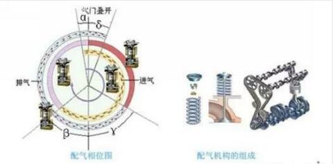 我們知道,普通汽油發(fā)動(dòng)機(jī)有進(jìn)氣、壓縮、做功和排氣四個(gè)沖程,這里要注意一個(gè)細(xì)節(jié),那就是氣門的運(yùn)動(dòng)總要有一個(gè)提前量和延后量。舉個(gè)例子,進(jìn)氣門不是在活塞運(yùn)動(dòng)到上止點(diǎn)的時(shí)候才開啟進(jìn)氣,而是在離上止點(diǎn)還有一小段距離的時(shí)候就開啟了,然后進(jìn)氣門也不是在活塞運(yùn)動(dòng)到下止點(diǎn)的時(shí)候關(guān)閉進(jìn)氣,而是在活塞到達(dá)上止點(diǎn)之后并開始往下運(yùn)動(dòng)一小段距離后才關(guān)閉,排氣門也有同樣的特點(diǎn)。