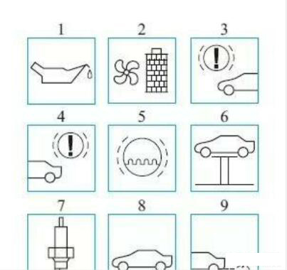 1—發(fā)動機機油;2—花粉過濾器;3—前輪制動襯塊;4—后輪制動襯塊;5—制動液;6—車輛檢測;7—火花塞;8—車輛檢查;9—廢氣排放檢測