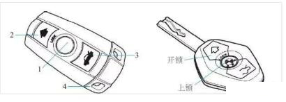 1—上鎖鍵;2—開鎖鍵;3—后備廂開啟鍵;4—應(yīng)急鑰匙