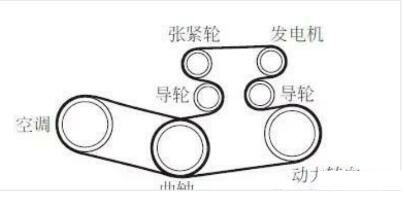 更換發(fā)動機傳動皮帶時,要記清發(fā)動機傳動皮帶的盤繞路徑,以免安裝時發(fā)生錯誤。傳動皮帶的盤繞方法如下: