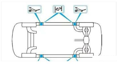 維護(hù)保養(yǎng)操作中使用舉升機、千斤頂和安全支架舉升或支撐車輛時要按照下圖所示執(zhí)行操作。
