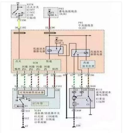 (2)刮水器開關(guān)內(nèi)部低速擋和間歇擋與GEM之間的線路存在問題。
