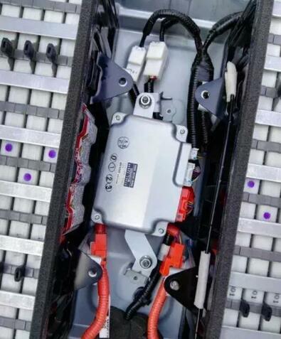 看到的只有三個(gè)組合電池和密密麻麻的線組,看到眼花的同學(xué)別謊。左邊的黑色盒子是混合動(dòng)力電機(jī)的繼電器總成