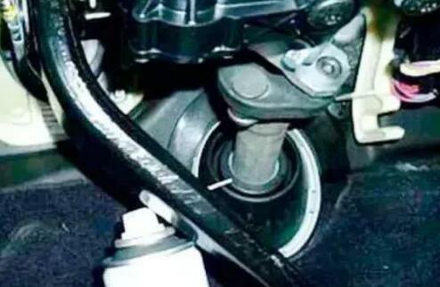 解決措施:使用BMW通用潤滑噴劑,對防塵套和轉(zhuǎn)向軸上的塑料密封圈進(jìn)行潤滑,在操作時(shí)需要從發(fā)動(dòng)機(jī)側(cè)和車內(nèi)分別進(jìn)行潤滑。具體的操作步驟如下: