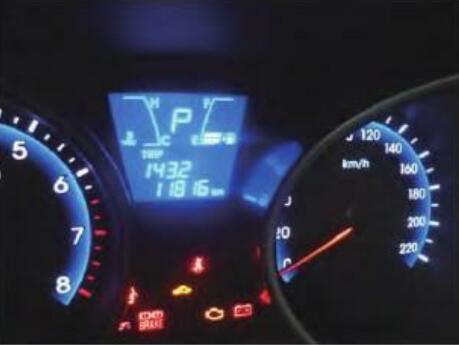 一輛行駛里程約12000km的11款北京現(xiàn)代ix35汽車。該車在行駛過程中發(fā)動機故障指示燈亮(如圖1所示),并且加不起速,熄火后發(fā)動機不好啟動,要啟動很久才可以著車。