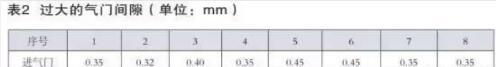 表1過小的氣門間隙(單位:mm)