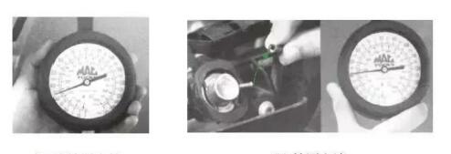 主要原因是可燃混合氣過濃或過稀造成混合氣在氣缸內(nèi)無法正常燃燒,下圖(a)所示為怠速時的壓力表指示值。