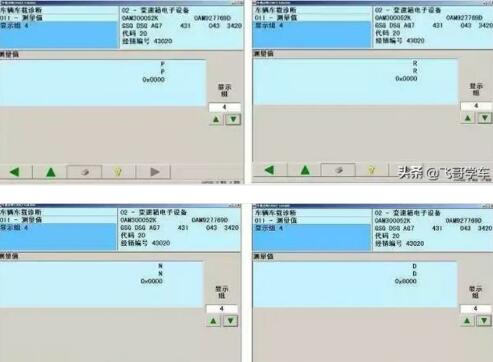 4、檢查變速箱控制單元換擋桿信息數(shù)據(jù)流,第 4 組的 1 和 2 區(qū),當(dāng)選檔桿掛入相應(yīng)的檔位時,數(shù)據(jù)流則顯示相應(yīng)的檔位信息(見圖 2);由此證明變速桿 E313 至機(jī)電單元的檔位信息傳遞正常;