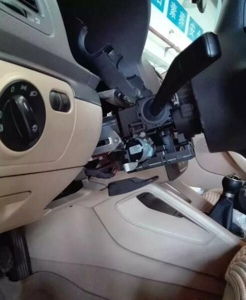 點(diǎn)火開(kāi)關(guān)更換比較容易。撬開(kāi)上防塵蓋,擰下下防塵蓋螺絲,點(diǎn)火開(kāi)關(guān)就暴露無(wú)遺。再用兩個(gè)細(xì)小的起子或鋼針插入點(diǎn)火開(kāi)關(guān)外殼與鑰匙總成座之間,頂開(kāi)扣子,輕松一撬就出來(lái)了。