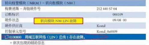讀取故障碼,與啟動(dòng)機(jī)有關(guān)的故障碼,只有一個(gè),“U100800 局域互聯(lián)網(wǎng)絡(luò)(LIN)總線1存在故障”。