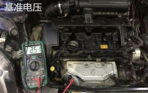 找出基準(zhǔn)電壓(對地電壓)并不是什么難事,首先要排除加熱線電壓,加熱線電壓是12V比較好判斷,小于0.2V的就是加熱線的地線了。剩下的4根線其實是3根線,有兩根線是整合到了一起。逐個排除即可。在經(jīng)過測量之后發(fā)現(xiàn),這臺MINI的前氧對地電壓為2.5v。