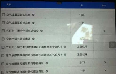 因為氧傳感器是需要工作溫度的,寬域的氧傳感器工作溫度達(dá)到750度時才能進(jìn)行正常工作。所以為了快速的達(dá)到工作溫度,將車進(jìn)行路試查看前氧傳感器的數(shù)據(jù)流。其實換完我就知道這個故障已經(jīng)好了,因為發(fā)動機(jī)能夠順利啟動, 沒有再次熄火。