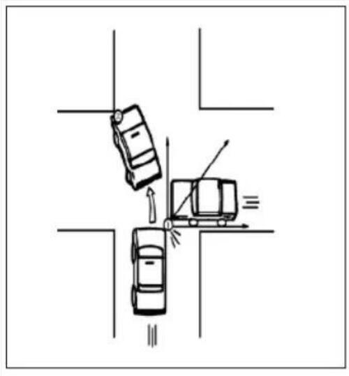 實際碰撞中,兩車的相撞會產(chǎn)生不同損傷類型的組合(圖1)。 車身維修人員在損傷評估之前,應(yīng)盡可能多地通過車主了解事故 實際發(fā)生的真實過程。 圖1 車身發(fā)生多次碰撞圖
