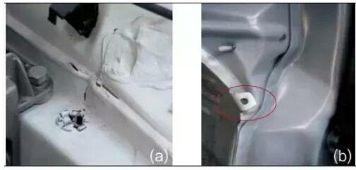 沿著碰撞力擴(kuò)散的路徑,按順序進(jìn)行檢查。檢查中要仔細(xì)觀 察板件的連接部位,零件的棱角和邊緣等,如圖4所示。