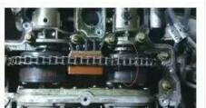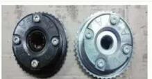 當(dāng)拆掉氣門室蓋后,發(fā)現(xiàn)了問題所在,排氣正時(shí)嚴(yán)重錯(cuò)位,進(jìn)氣正時(shí)也有一定程度的錯(cuò)位。究其原因,發(fā)現(xiàn)兩個(gè)凸輪軸鏈輪都有嚴(yán)重磨損(如圖4所示),汽油泵損壞后多次打車,造成跳齒。與做完保養(yǎng)后出現(xiàn)此故障,純屬巧合。于是報(bào)價(jià)更換兩個(gè)鏈輪、鏈條及其他相關(guān)部件后,把發(fā)動(dòng)機(jī)重新裝復(fù),試車正常。