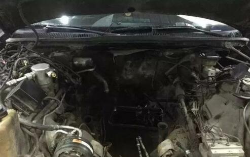 由于是修復(fù)發(fā)動(dòng)機(jī)漏油,無(wú)疑將發(fā)動(dòng)機(jī)拆下來(lái)修復(fù)是最合理的。5.7升發(fā)動(dòng)機(jī)雖然排量上足夠大,但是發(fā)動(dòng)機(jī)本身的體積并不大。甚至是有一點(diǎn)小~熟悉通用V系列發(fā)動(dòng)機(jī)的朋友都應(yīng)該知道,通用最出名的就是發(fā)動(dòng)機(jī)的體積足夠小了,這也是為什么通用的發(fā)動(dòng)機(jī)會(huì)被很多改裝車青睞。我去年有幸在阿拉善見(jiàn)到了一輛6.2的巴吉車,重量?jī)H僅是在一噸左右。