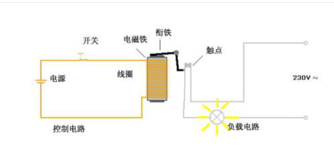繼電器有兩個主要部分:一個是線圈;另一個是觸點。繼電器中的線圈起到控制作用;觸點的狀態(tài)取決于線圈是否產(chǎn)生磁場。當(dāng)觸點閉合后,被控制的用電設(shè)備開始工作。
