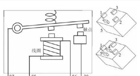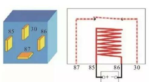 如下圖所示,85#和86#端子是線圈,屬于控制部分;87#和30#端子是觸點,屬于被控制部分(即輸出端)。