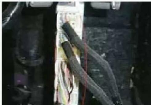 因為該信號線由空調(diào)放大器控制 , 于 是 將 安 裝 在 右 前 雜 物 箱 后面的空調(diào)放大器拆下來檢查,首先測量該信號線,從后鼓風(fēng)機(jī)控制單元到空調(diào)放大器為接通的狀態(tài),拔下空調(diào)放大器上的插頭(如圖5所示),仔細(xì)檢查插頭內(nèi)部有少量的水跡,將空調(diào)放大器的所有插頭用酒精清理,然后用風(fēng)槍吹干,裝復(fù)再次檢驗后空調(diào),鼓風(fēng)機(jī)恢復(fù)正常的工作,問題解決。
