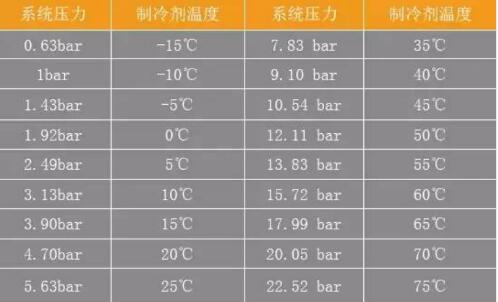 表2 系統(tǒng)壓力與制冷劑(R134a)溫度對應(yīng)關(guān)系