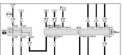 2. 檢查J682 繼電器至J764 控制單元線路、針腳無(wú)異常。