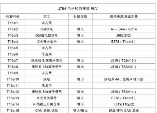 如圖一所示對(duì)電路圖29/3 進(jìn)行詳細(xì)注釋后可得到ELV 插頭T16s 的針腳性質(zhì)如下表,除去供電、接地與CAN 針腳,重點(diǎn)對(duì)ELV 的信號(hào)針腳3、4、7、8、12、13、14 進(jìn)行分析。