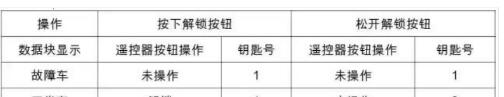 對(duì)遙控進(jìn)行同步(先按遙控鑰匙上的解鎖按鈕,然后在一分鐘內(nèi)用鑰匙頭將汽車(chē)解鎖),無(wú)效。讀取 BCM 數(shù)據(jù)塊檢查控制器是否收到遙控器信號(hào),發(fā)現(xiàn)按下遙控鑰匙時(shí),“ 遙控器按鈕操作” 顯示“ 未操作” ,鑰匙號(hào)顯示為“ 1” ,松開(kāi)鑰匙后保持為“ 1” ,不正常。