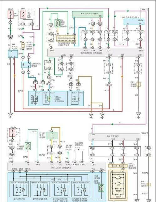 空調(diào)放大器的A37端外接空調(diào)ECU F16,駕駛員通過調(diào)節(jié)面板上的按鈕來進(jìn)行各種設(shè)定,各種設(shè)置信息從F16的4 端輸出。