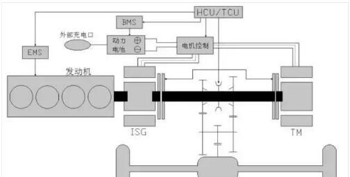 由于是混合動(dòng)力車(chē)型,診斷之前,有  必要先簡(jiǎn)單了解一下榮威E550的混合動(dòng)力 系統(tǒng)(圖2)。