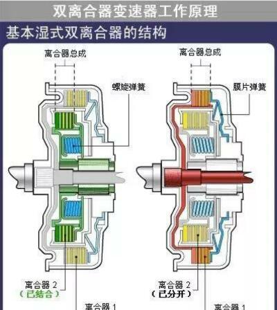 對(duì)比之下,雙離合器變速器使用兩個(gè)離合器,但沒(méi)有離合器踏板。先進(jìn)的電子系統(tǒng)和 液壓系統(tǒng)像控制標(biāo)準(zhǔn)自動(dòng)變速器那樣對(duì)離合器進(jìn)行控制。 但在雙離合器變速器中,各離合器單獨(dú)運(yùn)轉(zhuǎn)。 一個(gè)離合器控制奇數(shù)擋(一擋、三擋、五擋和倒擋),另一個(gè)離合器控制偶數(shù)擋(二擋、四擋和六擋)。 這樣,不需要中斷從發(fā)動(dòng)機(jī)到變速器的動(dòng)力傳送就可以換擋。
