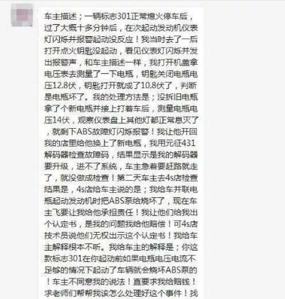 遇到這種問題,上面也說過,在搭啟動之前不是有很多燈亮了么? 后面啟動了之后其它燈都熄滅了,唯獨(dú)ABS燈還亮著,這就說明在沒有搭啟動之前他ABS泵就已經(jīng)燒了,廠家有出過文件,所以不予賠償,4S店肯定也不會攤這事兒,索性就把這件事怪到外面救援人員身上了,讓無辜的救援人員背這黑鍋,既然這樣,首先,你所謂權(quán)威的4S店既然說是救援人員損壞的,證據(jù)拿來,是不是,誰能保證萬一是你4S搞壞的呢?廠家不賠就怪救援人員,萬一是車主自己也說不準(zhǔn)啊,而且,還有就是廠家明文規(guī)定,虧電狀態(tài)下禁止打火,不然會讓車上電氣設(shè)備受損,4S店知道而不告知客戶,那也是4S的責(zé)任啊,反正不管怎么說,你都有理就對了。原因很簡單,4S店拿不出證明是救援人員搞壞的證據(jù),就這么簡單,既然拿不出來,這后續(xù)的可能性就多了……