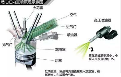 我們知道,傳統(tǒng)的發(fā)動機是在進氣歧管中噴油再與空氣形成混合氣體,最后才進入到氣缸內(nèi)的。在此過程中,因為噴油嘴里燃燒室還有一定距離,微小的油粒會吸附在管道壁上,而且汽油與空氣的混合受進氣氣流和氣門關(guān)閉影響較大。