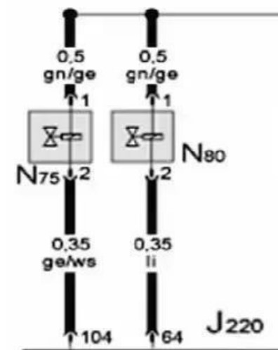 N75-增壓壓力限制電磁閥;N80-活性炭罐電磁閥;J220-發(fā)動機控制單元。