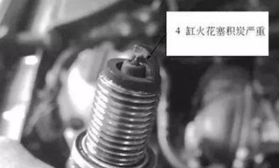 懷疑可能是4缸燃燒不良,導(dǎo)致發(fā)動機怠速抖動。拆下四個噴油器、四個火花塞,發(fā)現(xiàn)4缸火花塞積炭嚴(yán)重(下圖)。清洗噴油器并更換火花塞,故障依舊。將3缸與4缸點火線圈對換,故障碼存儲仍然是4缸不發(fā)火。