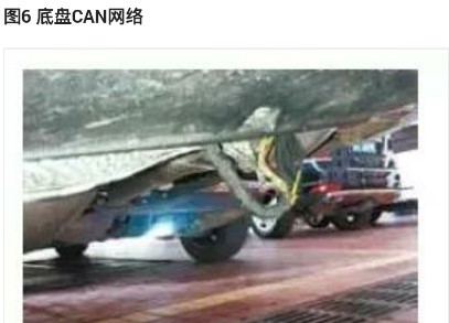 由于CAN分配器已經(jīng)檢查過,于是準備檢查CAN E上相連的控制模塊(如圖6所示),當檢查底盤上的部件時,發(fā)現(xiàn)了問題所在,發(fā)現(xiàn)左側智能雷達傳感器的線束處于排氣管口(如圖7所示),由于尾氣溫度較高,把線束外面的絕緣側都燒化連在一起。本來雷達傳感器線束是在保險杠里面固定的,估計是新車出廠時裝配不到位,造成線束受損。把線束重新包扎后,清除故障碼,試車一切正常。