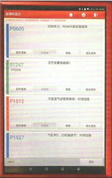 故障燈已經(jīng)點亮,連接故障診斷儀X431,讀取到多個故障碼,數(shù)據(jù)流也呈異常。試車后進一步確定,該車的發(fā)動機輸出功率已經(jīng)不足以維持怠速需要的動力,初步懷疑故障的原因有: