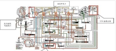 最后查看油路圖(如圖2所示),圖中的紅圈處是壓力開關(guān)(圖中有幾個油壓開關(guān)排列順序是4、3、1、5)。