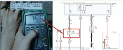 故障診斷:據(jù)車主反映,車子最近出現(xiàn)開啟空調(diào)系統(tǒng),按下A/C開關(guān)后,出自然風(fēng),沒有冷氣。接修車輛后,驗(yàn)證故障現(xiàn)象,啟動(dòng)發(fā)動(dòng)機(jī),空調(diào)系統(tǒng)調(diào)至制冷狀態(tài),開啟A/C開關(guān),經(jīng)過很長一段時(shí)間后,空調(diào)依舊出自然風(fēng),空調(diào)不制冷,故障現(xiàn)象確實(shí)存在。經(jīng)初步檢查發(fā)現(xiàn),開啟A/C開關(guān)后,壓縮機(jī)電磁離合器沒有吸合,空調(diào)系統(tǒng)不能正常制冷,由故障現(xiàn)象及初步檢查結(jié)果分析可知,此車故障現(xiàn)象是由制冷系統(tǒng)(壓縮機(jī))不工作導(dǎo)致的空調(diào)系統(tǒng)工作異常。