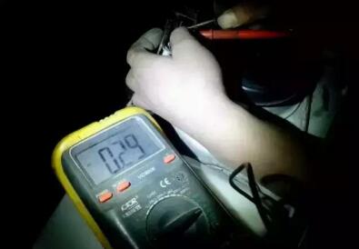 這下有點懵懂了!不管怎樣還得再量電源線保險(那保險在電瓶上,拔下處理腳再裝上),1腳和14腳都有!再查26腳搭鐵到電腦板,一看怎樣有0,586MΩ,嘿明顯不合呀,不應(yīng)該有那么大呀!先拆下用砂紙打磨下再裝,