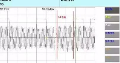 圖5:正常時發(fā)動機轉速傳感器信號輪后的14個齒對應1缸上止點