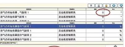 (2)檢查發(fā)動(dòng)機(jī)缺火數(shù)據(jù)及其他數(shù)據(jù)正常,用診斷儀作動(dòng)(人為指令)缸組1排氣凸輪軸調(diào)節(jié)執(zhí)行器,凸輪軸位置無變化(圖2),懷疑是故障碼的牽制,清除故障碼,但作動(dòng)仍無變化。