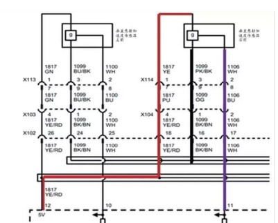根據(jù)電路圖(如圖3所示)分析,點火開關打開ON擋,X114的1號腳與3號腳電壓為5V。