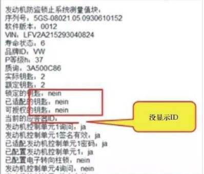 新寶來防盜鎖止系統(tǒng)能夠讀取到鑰匙的ID信息,匹配后此ID信息必須是防盜鎖止系統(tǒng)內