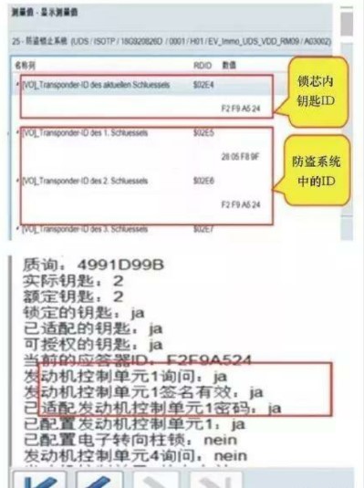 存儲的ID信息其中的一個。由于此車更換了全車鎖,防盜系統(tǒng)中的ID