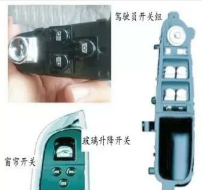 各個窗簾的按鈕將連同電動車窗升降機按鈕一起,安裝在一個開關組內(nèi),如圖12所示。