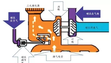 首先了解下EA211系列發(fā)動(dòng)機(jī)上所采用的渦輪增壓器,該渦輪增壓器相對(duì)于之前第二代的渦輪增壓,體積更小,結(jié)構(gòu)也更簡(jiǎn)單。同時(shí)渦輪轉(zhuǎn)速也更快(第二代最高100000r/min,而現(xiàn)款可達(dá)200000r/min),且保留了N75增壓壓力調(diào)節(jié)電磁閥,而取消了N249內(nèi)循環(huán)電磁閥的控制,因此控制方面減少了低工況時(shí)的旁通,只保留了高工況的放氣泄壓。結(jié)構(gòu)簡(jiǎn)單了,但由此可能造成進(jìn)氣的波動(dòng)引起噪聲,特在進(jìn)氣管部分進(jìn)行了更改,其內(nèi)部添加了專為降低噪音的結(jié)構(gòu)腔。