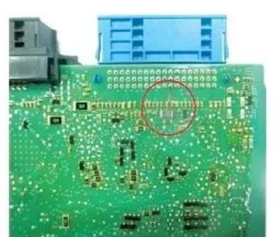 測量左側(cè)油位傳感器供電正常,搭鐵也是斷路狀態(tài), 測量燃油泵端子供電和搭鐵均正常。由上述電路圖可知,油位傳感器是由接線盒電子裝置(JBE)監(jiān)控,JBE為傳感器提供供電,傳感器又在JBE內(nèi)部搭鐵。接下來在接線盒電子裝置(JBE)的插頭X14271(藍(lán)色)處連接適配器繼續(xù)測量, 結(jié)果顯示, 從油位傳感器插頭到JBE 插頭的線束導(dǎo)通良好,而JBE插頭X14271的7號(hào)端子與9號(hào)端子與搭鐵仍不導(dǎo)通。說明油位傳感器的搭鐵線在接線盒電子裝置(JBE)內(nèi)部斷路。