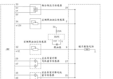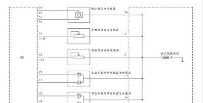 1.制冷劑壓力傳感器,燃油箱左側(cè)油位傳感器,燃油箱右側(cè)油位傳感器以及駕駛員側(cè)后部車窗升降電機(jī)的霍爾傳感器,前乘客側(cè)后部車窗升降電機(jī)的霍爾傳感器,以上傳感器的搭鐵線在JBE內(nèi)部交匯于一點(diǎn),并通過一個(gè)0Ω的貼片保險(xiǎn)電阻搭鐵。
